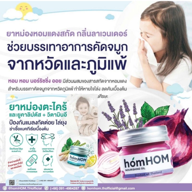 HomHOM บาล์มหอมแดง ห๊อมหอม Nourishing Oil (สารสกัดจากหอมแดง) ลดภูมิแพ้ กลิ่นลาเวนเดอร์ 25 กรัม