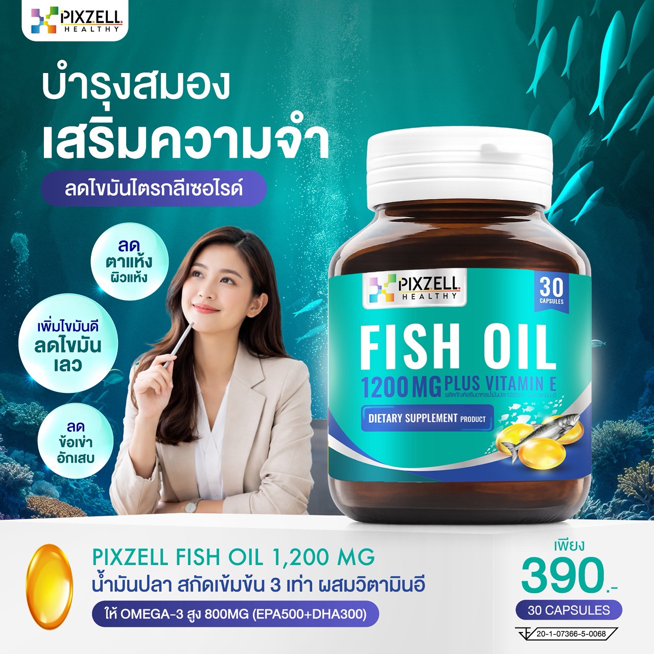 ผลิตภัณฑ์เสริมอาหาร พิกซ์เซล ฟิช ออย 1,200 มก. ผสมวิตามินอี