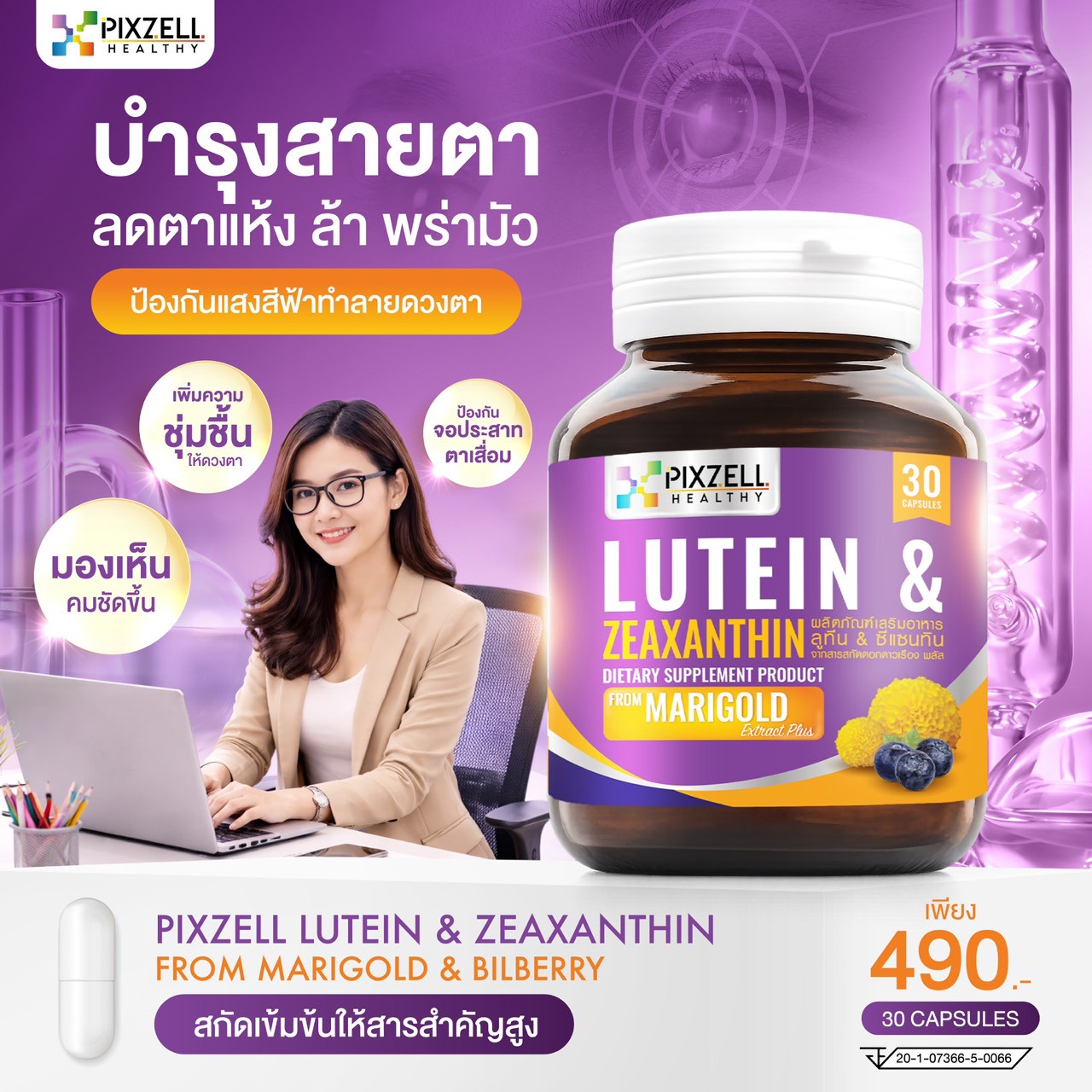 ผลิตภัณฑ์เสริมอาหาร พิกซ์เซล ลูทีน & ซีแซนทิน สกัดเข้มข้นจากดอกดาวเรืองและบิลเบอร์รี่