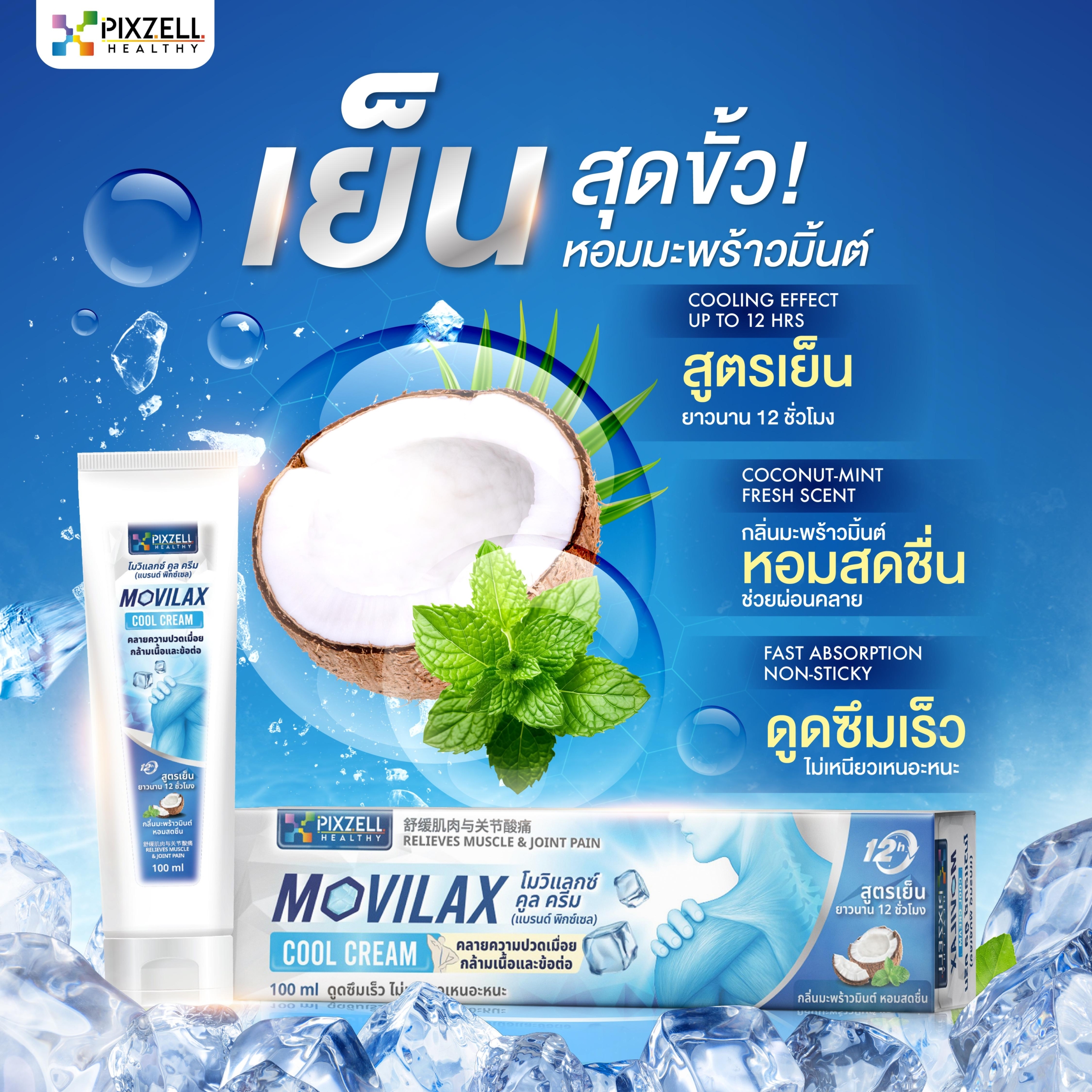 Pixzell Movilax Cool Cream โมวิแลกซ์ คูล ครีม คลายปวดเมื่อย *สูตรเภสัช สมุนไพรกว่า 10 ชนิด แบรนด์พิกซ์เซล
